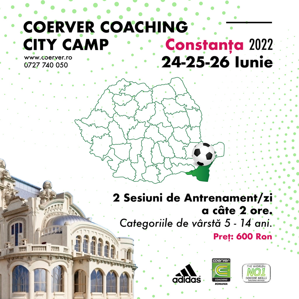 In perioada 24-25-26 Iunie COERVER Coaching România organizeaza stagiul de pregatire din seria CITY CAMPS in orasul Constanta.